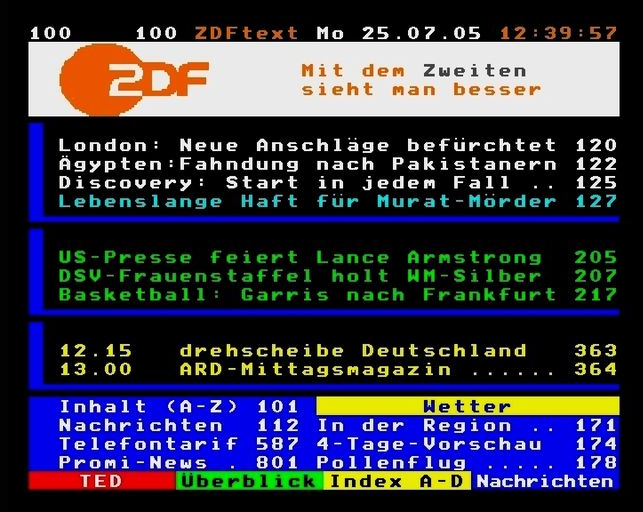 Пример отображения телетекста на немецком телеканале 2DF