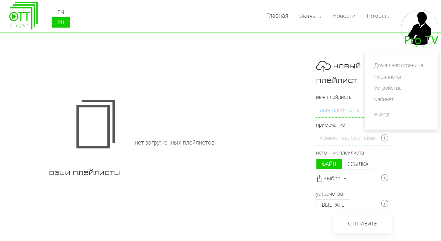 - в качестве источника плейлиста укажите ссылку на плейлист, которую вы получили у провайдера,