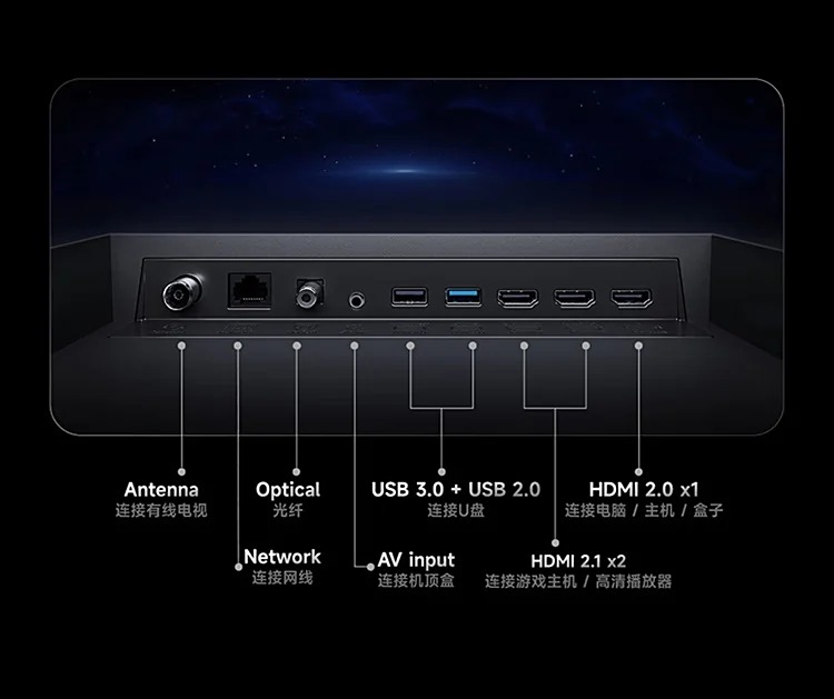 Телевизор работает на базе процессора с четырьмя ядрами Arm Cortex-A73, в помощь ему — 4 ГБ оперативной и 64 ГБ встроенной памяти. В качестве программной платформы установлена HyperOS 3. Звучание обеспечивает аудиосистема мощностью 30 Вт. Чтобы управлять таким экраном было не страшно, встроен голосовой помощник XiaoAI.